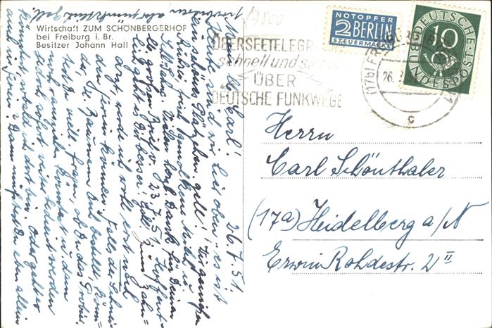 41220040 Freiburg Breisgau Wirtschaft zum Schönbergerhof Besitzer Johann Hall KatCode 11110008311000