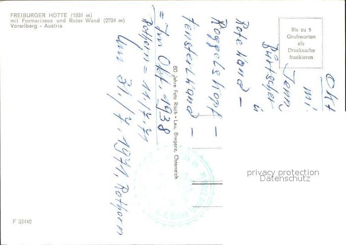 72294636 Freiburgerhuette Formarinsee Roter Wand postalisch nicht gelaufen Erhaltung siehe scans KatCode: 11390341080108
