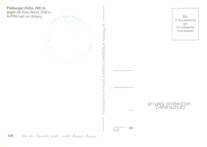72677677 Freiburgerhuette gegen die Rote Wand Lechquellengebirge postalisch nicht gelaufen Erhaltung siehe scans [FriedD77] KatCode: 11390341080108