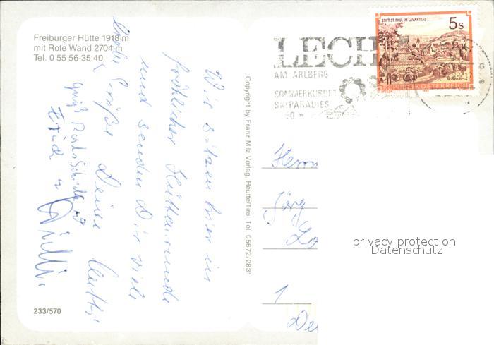 72049736 alte Postkarte Freiburgerhuette mit Rote Wand postalisch gelaufen Erhaltung siehe scans KatCode: 11390341080108