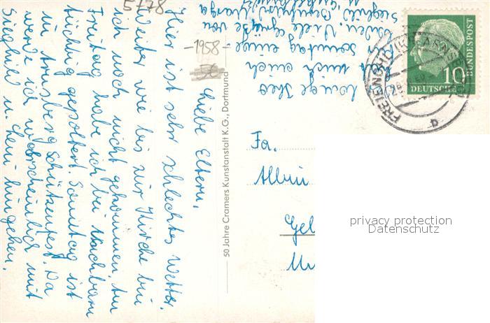 73695263 alte Postkarte Freienohl Sauerland Blick zum Kueppel Panorama mit Ruhrbruecke Ruemmecketal Ruhrpartie postalisch gelaufen Erhaltung siehe scans [WerneD78] KatCode: 11110005958032