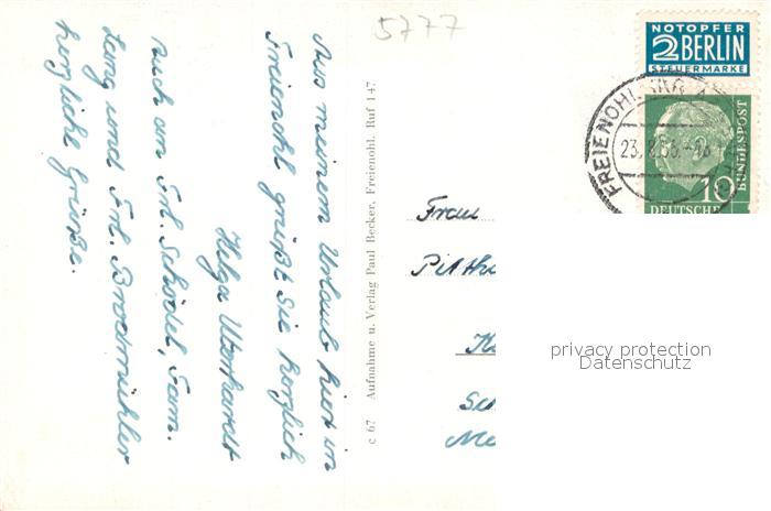 73695251 alte Postkarte Freienohl Sauerland Stilles Plaetzchen an der Ruhr postalisch gelaufen Erhaltung siehe scans [WerneD78] KatCode: 11110005958032