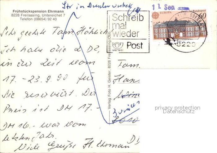 72406832 alte Postkarte Freilassing Fruehstueckspension Ehrmann Landschaftspanorama postalisch gelaufen Erhaltung siehe scans KatCode: 11110009172118