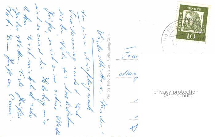 72812497 alte Postkarte Freilassing Hauptstrasse Schulhaus Gesamtansicht mit Staufen Zwiesel Untersberg Bayerische Alpen postalisch gelaufen Erhaltung siehe scans [FriedD77] KatCode: 11110009172118