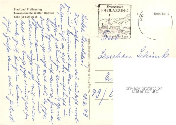 73742483 alte Postkarte Freilassing Stadtbad Schwimmbecken Gastraum postalisch gelaufen Erhaltung siehe scans [WerneD78] KatCode: 11110009172118