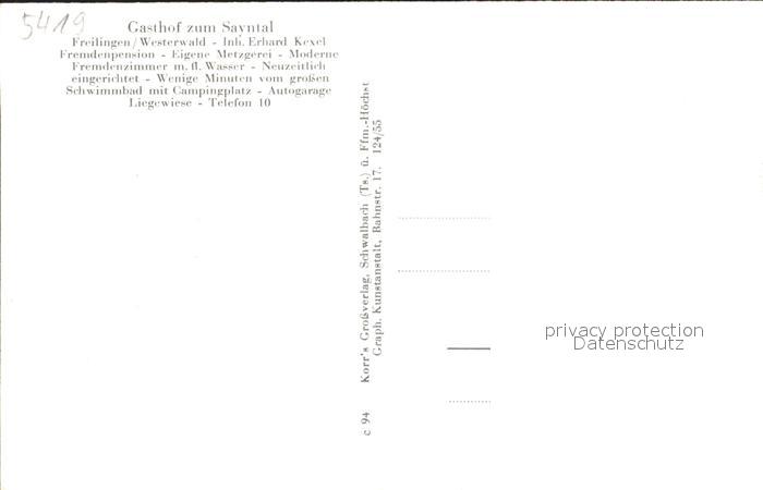 31720602 Freilingen Westerwald Gasthaus zum Sayntal postalisch nicht gelaufen Erhaltung siehe scans KatCode: 11110007143018