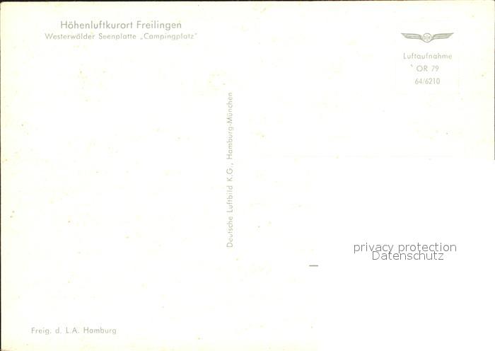 Freilingen Westerwald Hoehenluftkurort Westerwaelder Seenplatte Campingplatz Fliegeraufnahme postalisch nicht gelaufen Erhaltung siehe scans