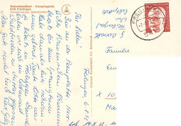 73878803 alte Postkarte Freilingen Westerwald Naturstrandbad Campingplatz postalisch gelaufen Erhaltung siehe scans [WerneD78] KatCode: 11110007143018