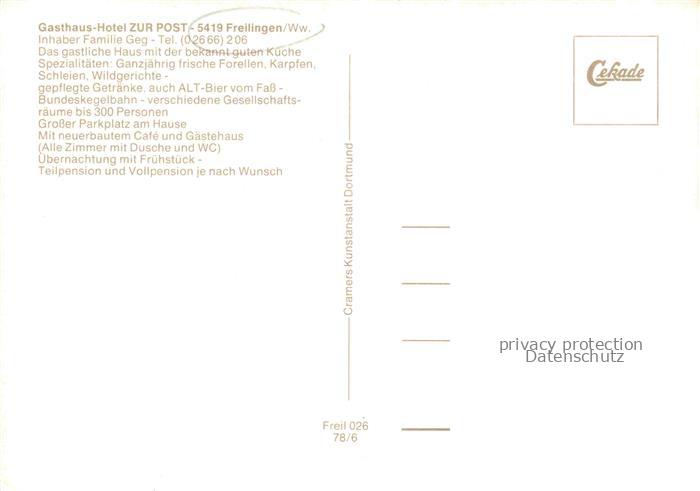 74124795 Freilingen Westerwald Rheinland-Pfalz Gasthaus Hotel zur Post Gastraum Kuchentheke Fremdenzimmer Landkarte Panorama postalisch nicht gelaufen Erhaltung siehe scans [FriedD77] KatCode: 11110007143018