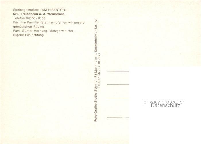 73856237 Freinsheim Gaststaette Am Eisentor Restaurant postalisch nicht gelaufen Erhaltung siehe scans [FriedD77] KatCode: 11110007332019