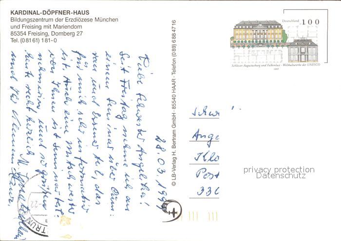 72257119 alte Postkarte Freising Oberbayern Kardinal Doepfner Haus Bildungszentrum Erzdioezese Muenchen Fliegeraufnahme postalisch gelaufen Erhaltung siehe scans KatCode: 11110009178124