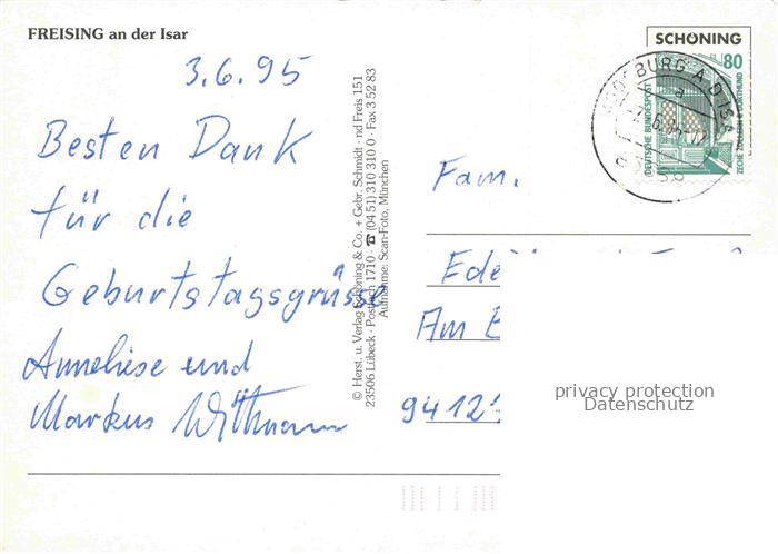 74034689 alte Postkarte Freising Oberbayern Stadtpanorama Eisenbahn postalisch gelaufen Fliegeraufnahme Erhaltung siehe scans [FriedD77] KatCode: 11110009178124