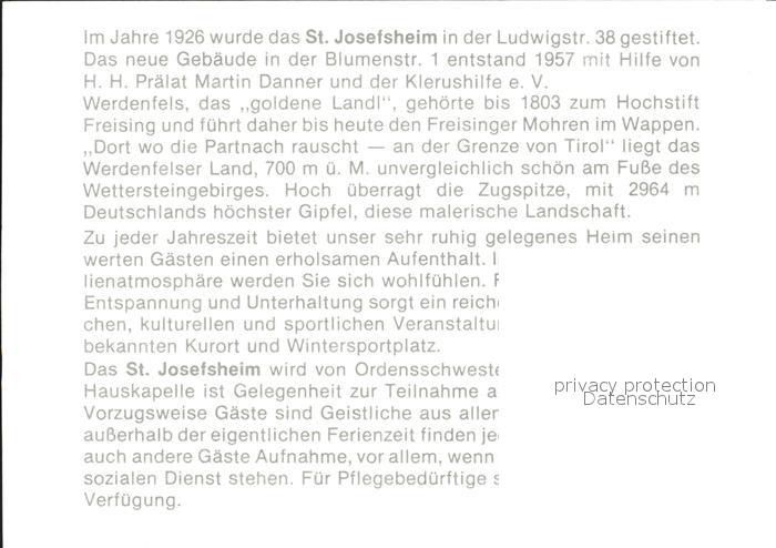 72287840 Freising Oberbayern Werdenfels St. Josefsheim postalisch nicht gelaufen Werbekarte (keine Postkarte) Erhaltung siehe scans KatCode: 11110009178124
