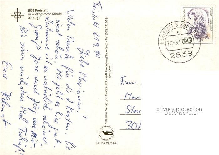 73792756 alte Postkarte Freistatt Sulingen D-Zug im Wietingsmoor Kanzlei postalisch gelaufen Erhaltung siehe scans [FriedD77] KatCode: 11110003251018