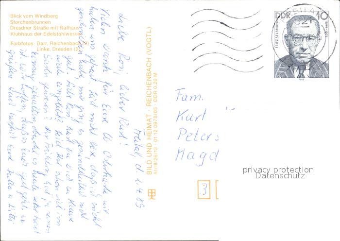 72549685 alte Postkarte Freital Blick vom Windberg Storchenbrunnen Dresdnerstrasse mit Rathaus postalisch gelaufen Erhaltung siehe scans [AndreD76 kv022box] KatCode: 11110014290130