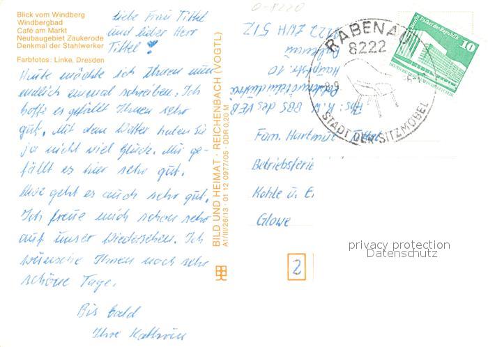 73039960 alte Postkarte Freital Panorama Windbergbad Cafe am Markt Neubaugebiet Zaukerode Denkmal der Stahlwerker postalisch gelaufen Erhaltung siehe scans [WerneD78] KatCode: 11110014290130
