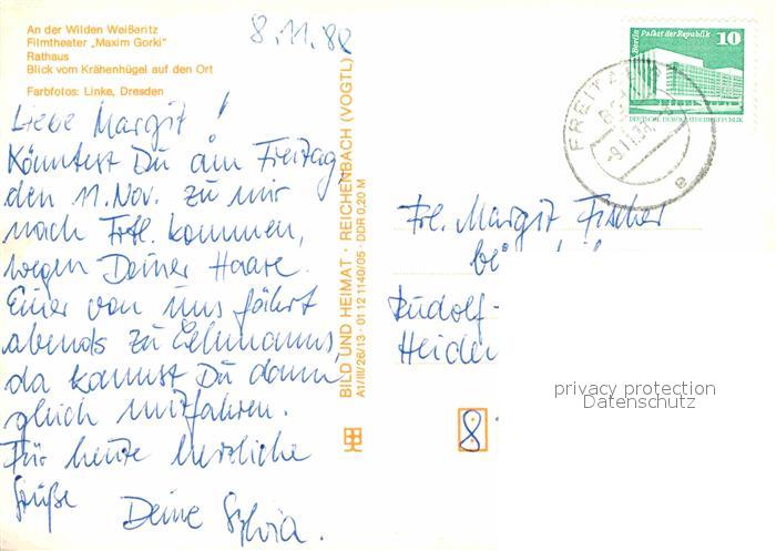 72626494 alte Postkarte Freital Wilde Weisseritz Filmtheater Maxim Gorki Rathaus Kraehenhuegel postalisch gelaufen Erhaltung siehe scans [FriedD77] KatCode: 11110014290130