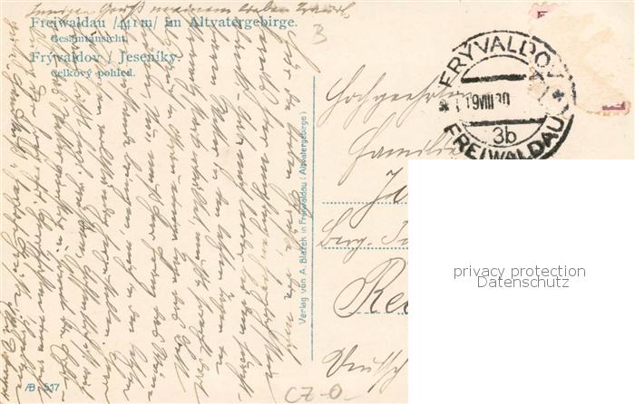 old postcard Freiwaldau Jesenik CZ Panorama postalisch gelaufen Erhaltung siehe scans [WerneD78]