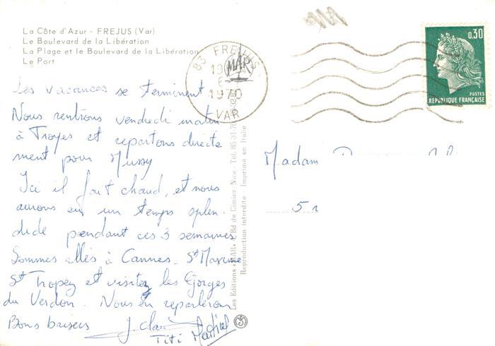 13948490 Frejus Boulevard de la Libération Plage Port postalisch gelaufen Erhaltung siehe scans [FriedD77] carte postale Frie Katcode 11170083183061