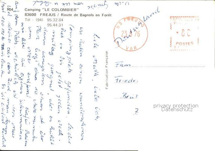 12034350 carte postale Frejus Camping Le Colombier postalisch gelaufen Erhaltung siehe scans KatCode: 11170083183061