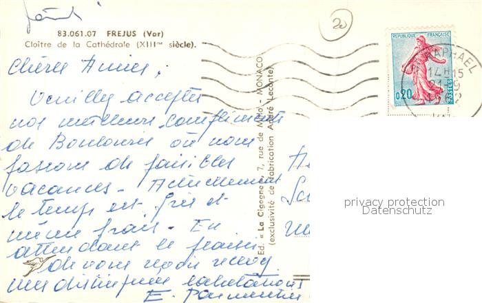 13484721 carte postale Frejus Cloître de la Cathedrale postalisch gelaufen Erhaltung siehe scans [FriedD77] KatCode: 11170083183061