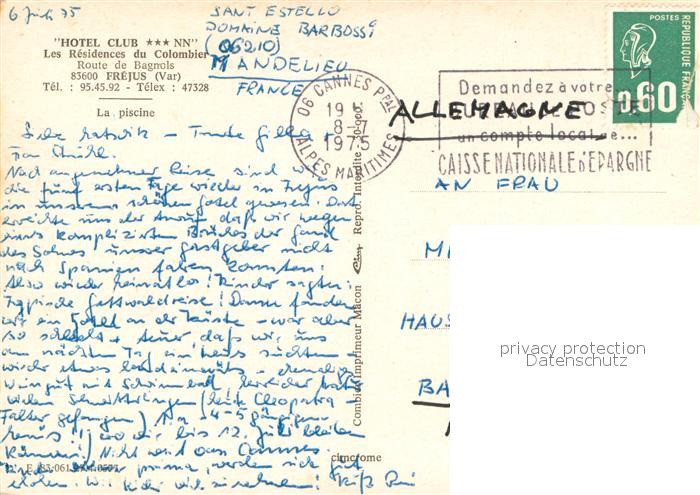 13721686 Frejus Hotel Club Les Residences du Colombier La Piscine postalisch gelaufen Erhaltung siehe scans [WerneD78] carte postale Wern Katcode 11170083183061