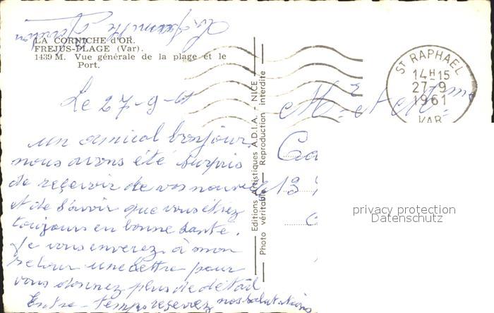 12269375 carte postale Frejus La Corniche D`Or Plage Hafen postalisch gelaufen Erhaltung siehe scans KatCode: 11170083183061