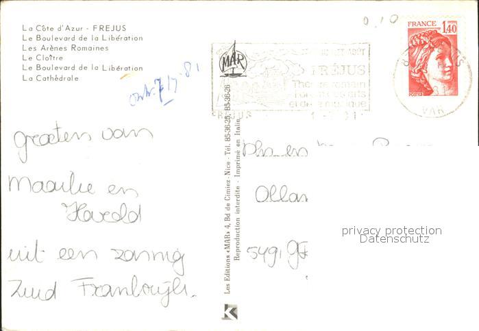 12921179 carte postale Frejus Les Arènes Romaines le Cloitre la Cathedrale postalisch gelaufen Erhaltung siehe scans [MatthD68] KatCode: 11170083183061