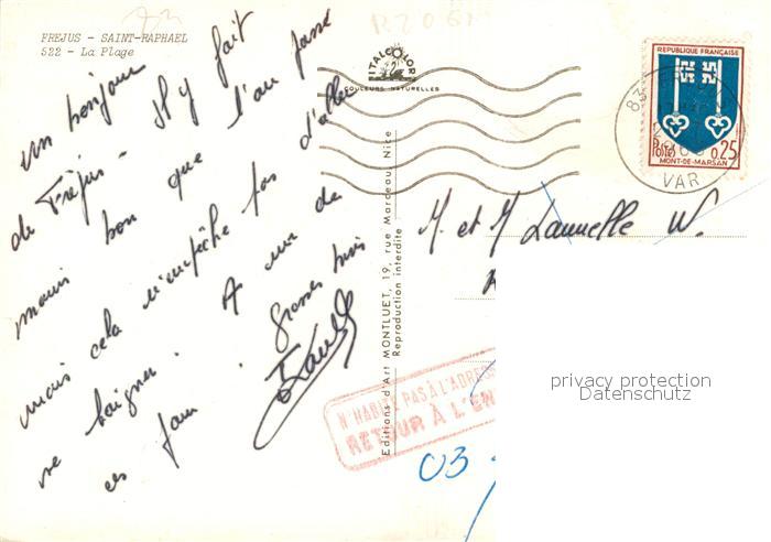 13526769 carte postale Frejus Saint Raphael la plage postalisch gelaufen Erhaltung siehe scans [FriedD77] KatCode: 11170083183061