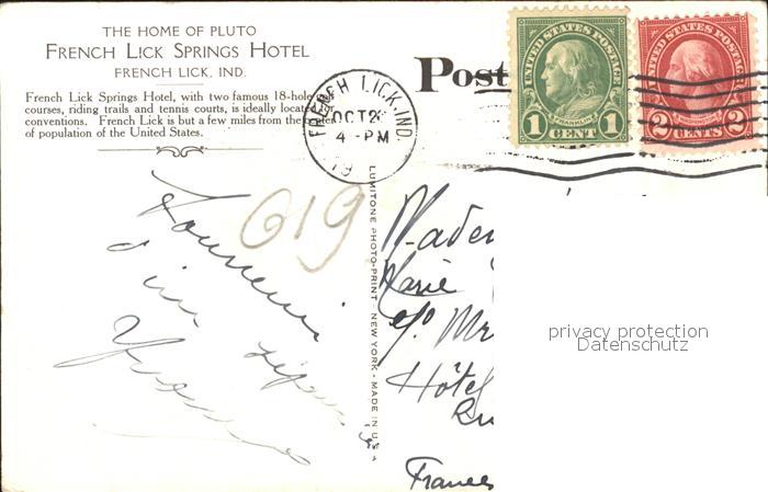 11686293 old postcard French Lick Springs Hotel postalisch gelaufen Erhaltung siehe scans KatCode: 14140160000000