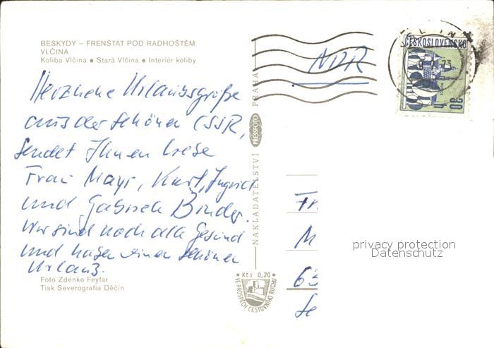 old postcard Frenstat pod Radhostem Beskydy Interhotel Vlcina postalisch gelaufen Erhaltung siehe scans