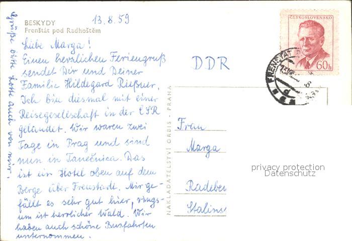 old postcard Frenstat pod Radhostem Ortsansicht postalisch gelaufen Erhaltung siehe scans