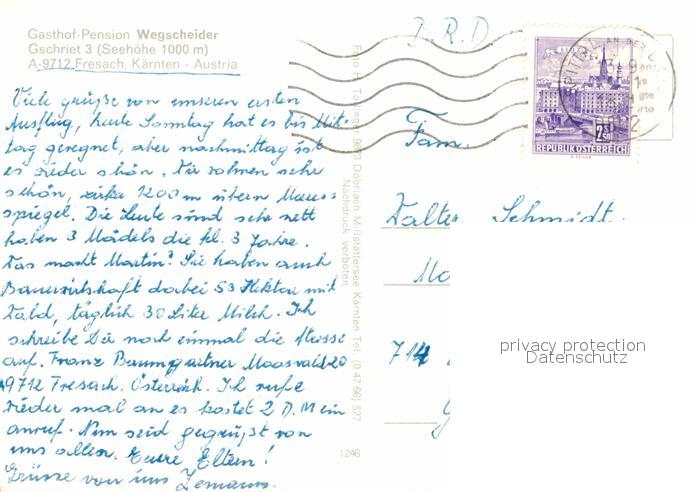 72889041 alte Postkarte Fresach Gasthaus Pension Wegscheider postalisch gelaufen Erhaltung siehe scans [LiesaD40] KatCode: 11390211020712