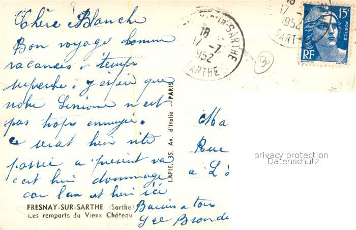 13484928 carte postale Fresnay-sur-Sarthe Les remparts du Vieux Chateau postalisch gelaufen Erhaltung siehe scans [LiesaD40] KatCode: 11170072272138