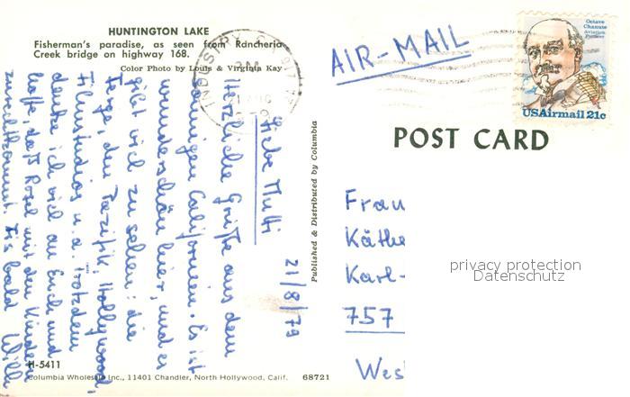 73130608 old postcard Fresno California Rancheria Huntington Lake postalisch gelaufen Erhaltung siehe scans [KathaD81] KatCode: 14140050000000