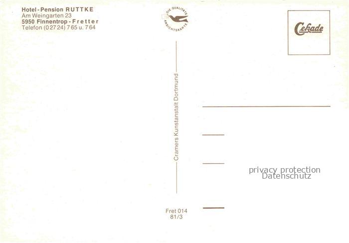 74023763 Fretter Finnentrop Olpe NRW Hotel Pension Ruttke Gastraum Empfang Uferpartie am See postalisch nicht gelaufen Erhaltung siehe scans [FriedD77] KatCode: 11110005966012