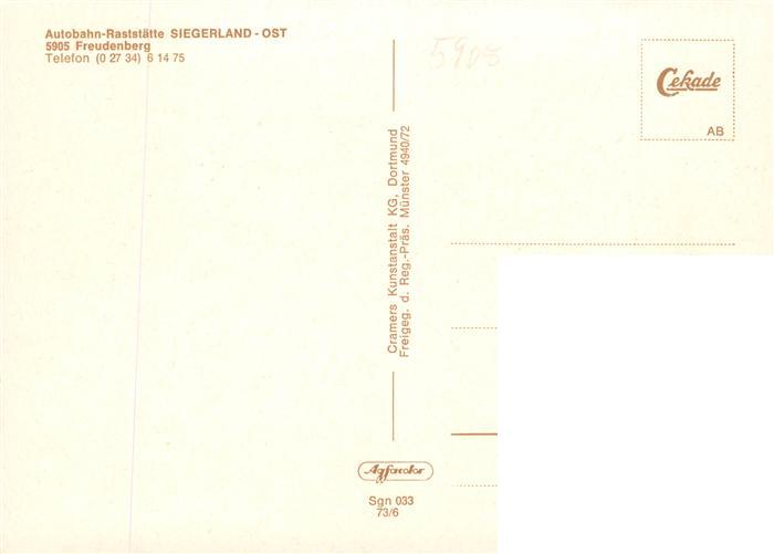 73888823 Freudenberg Bad Freienwalde BAB Raststaette Siegerland Ost Fliegeraufnahme postalisch nicht gelaufen Erhaltung siehe scans [FriedD77] KatCode: 11110012064053