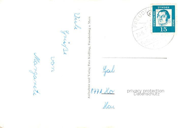 73874069 alte Postkarte Freudenberg Baden Rathaus Hauptstrasse Kirche Panorama Mainpartie postalisch gelaufen Erhaltung siehe scans [WerneD78] KatCode: 11110008128039