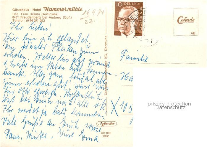 73858588 alte Postkarte Freudenberg Oberpfalz Gaestehaus Hotel Hammermuehle postalisch gelaufen Erhaltung siehe scans [FriedD77] KatCode: 11110009371122
