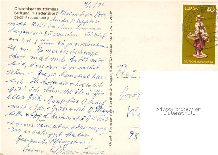 73043578 alte Postkarte Freudenberg Westfalen Diakonissenmutterhaus Stiftung Friedenshort postalisch gelaufen Erhaltung siehe scans [FriedD77] KatCode: 11110005970016