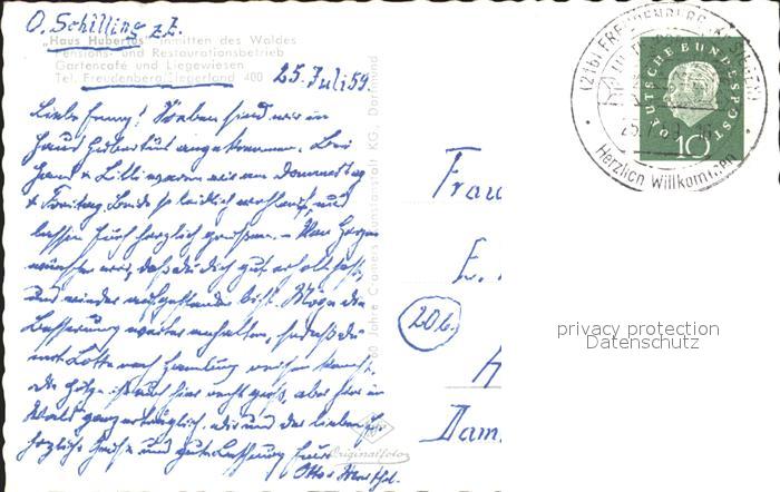 72043256 alte Postkarte Freudenberg Westfalen Haus Hubertus postalisch gelaufen KatCode: 11110005970016