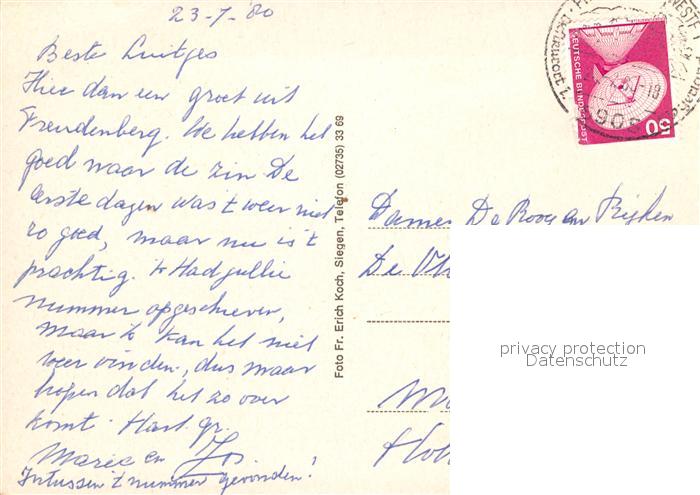 72942953 alte Postkarte Freudenberg Westfalen Stadtpanorama Der Flecken Schlossberg Hotel Marktstrasse postalisch gelaufen Erhaltung siehe scans [FriedD77] KatCode: 11110005970016