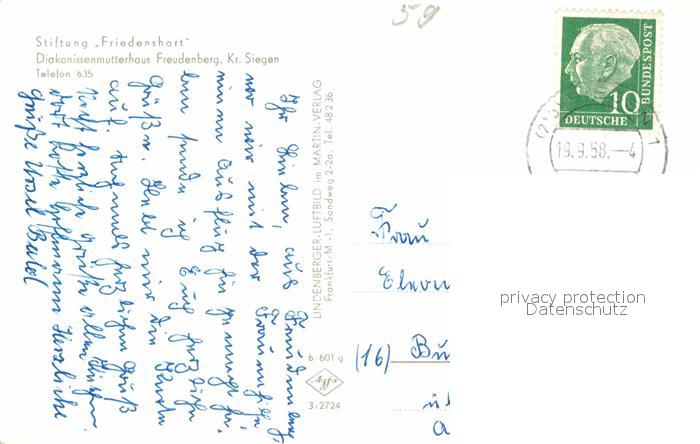 72893192 alte Postkarte Freudenberg Westfalen Stiftung Friedenshort postalisch gelaufen Erhaltung siehe scans [KathaD81] KatCode: 11110005970016