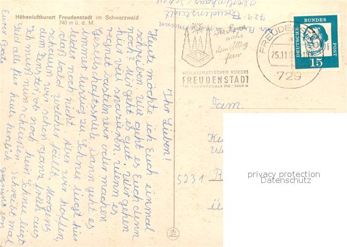 73257959 alte Postkarte Freudenstadt postalisch gelaufen Erhaltung siehe scans [NatalD47] KatCode: 11110008237028