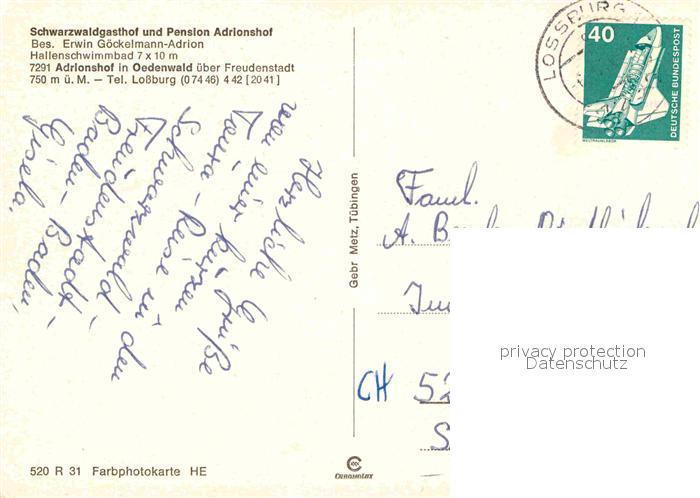 72720698 alte Postkarte FREUDENSTADT BW Adrionshof Schwarzwaldgasthof Pension postalisch gelaufen Erhaltung siehe scans [KathaD79] KatCode: 11110008237028