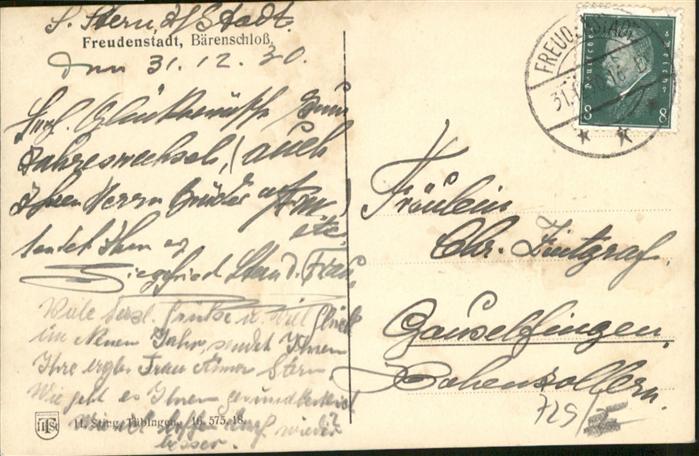 40966159 FREUDENSTADT BW Baeren Schloss postalisch gelaufen Alte Ansichtskarte Postkarte alte Postkarte Katcode 11110008237028