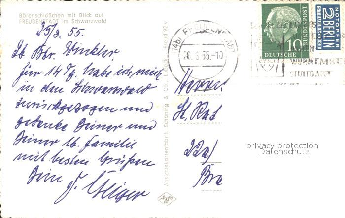 72073773 alte Postkarte FREUDENSTADT BW Baerenschloesschen mit Blick auf die Stadt Schwarzwald postalisch gelaufen Erhaltung siehe scans KatCode: 11110008237028