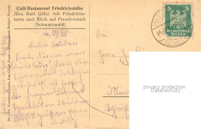 73770220 FREUDENSTADT BW Cafe Restaurant Friedrichshoehe postalisch gelaufen Erhaltung siehe scans [WerneD78] alte Postkarte Wern Katcode 11110008237028