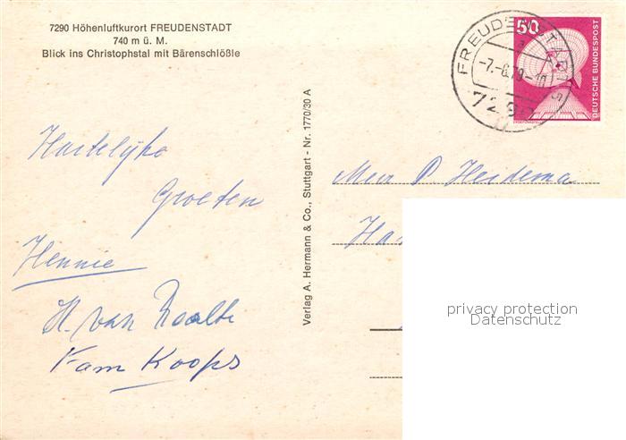72941398 alte Postkarte FREUDENSTADT BW Christophstal Baerenschloessle postalisch gelaufen Erhaltung siehe scans [PaolaD17] KatCode: 11110008237028