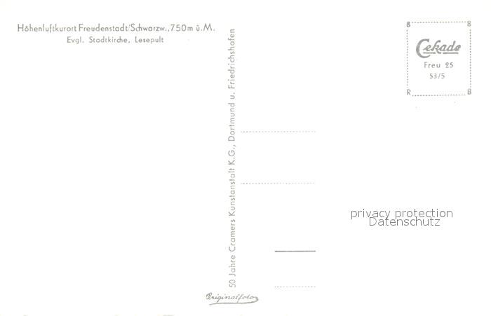 72966513 FREUDENSTADT BW Ev Stadtkirche Lesepult Kurort im Schwarzwald postalisch nicht gelaufen Erhaltung siehe scans [FriedD77] KatCode: 11110008237028